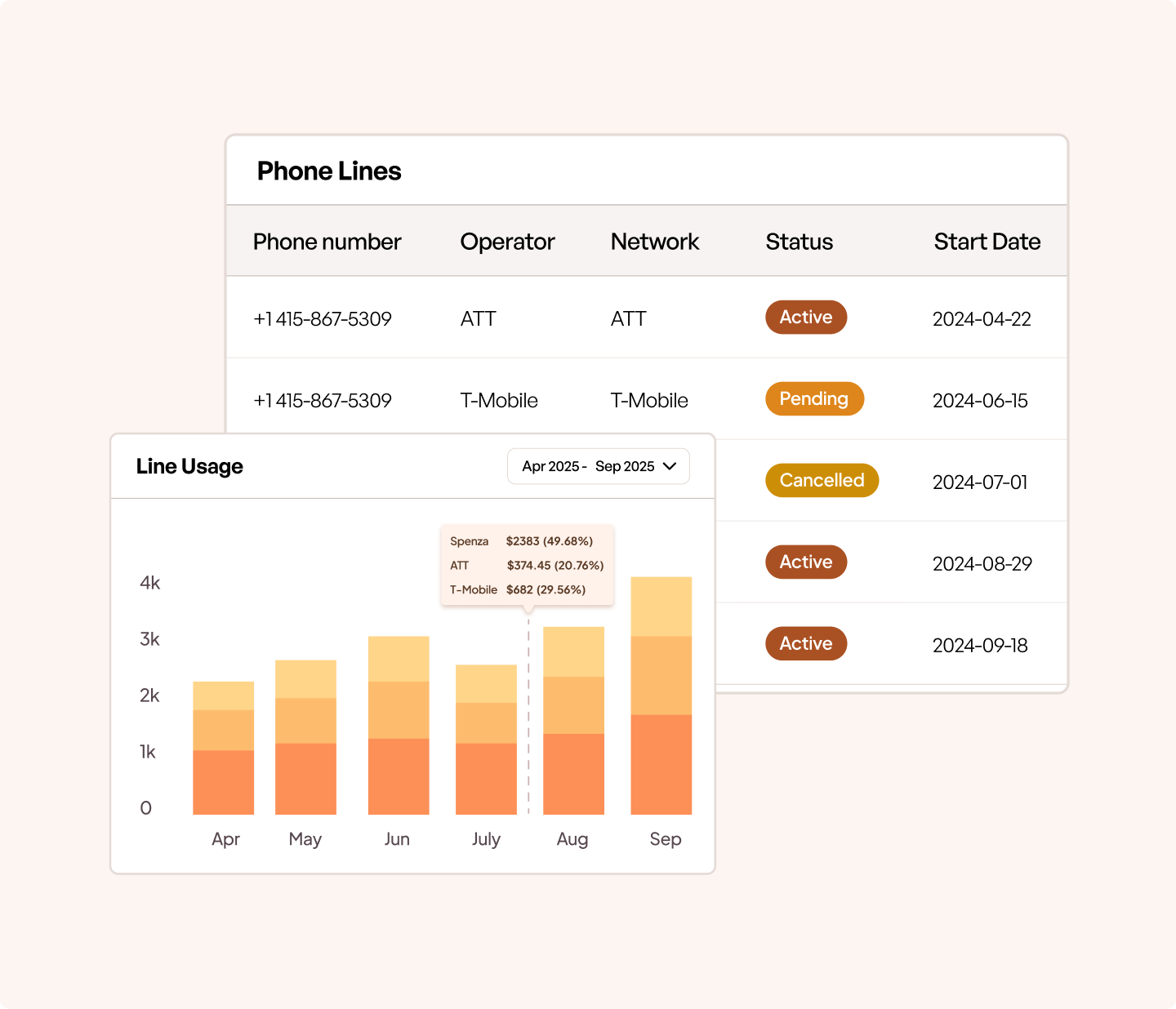 Spenza consolidates and analyzes all your connectivity data in one place. Review Key Performance Indicators, control spend and achieve telecom efficiency.